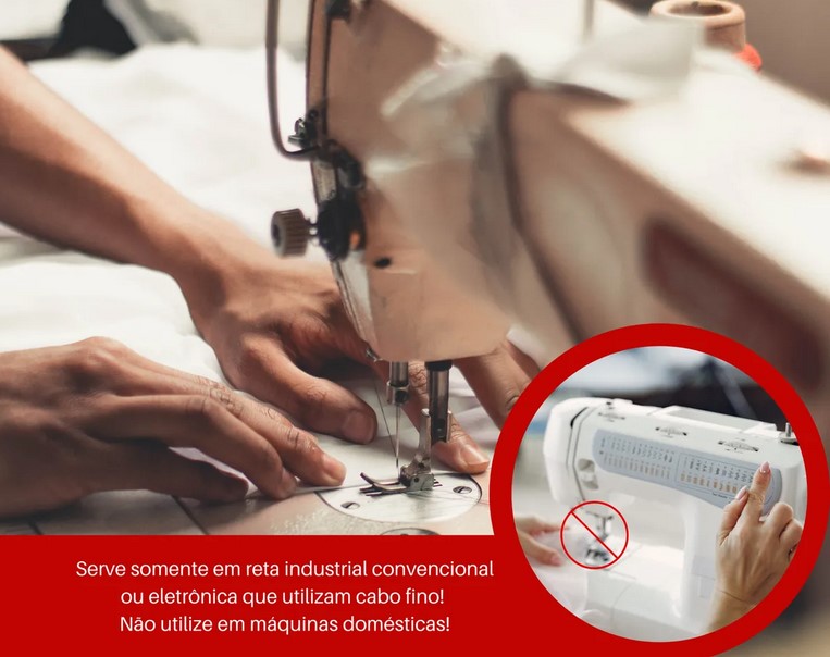 – Compatível com máquinas retas industriais ponto 5 ou máquinas que utilizem agulha cabo fino.