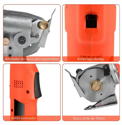 Estas características aliadas ao seu baixo peso e fácil manuseio, tornam o produto ágil e prático, para cortar pequenas quantidades de tecidos em algodão, lã, malha, sintético e outros.